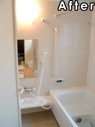 タイル貼りで冬など寒かった浴室。段差があり使い勝手が悪く危ないので改善して欲しいとの事でした。思い切って、浴槽の位置を変更し、床の段差を無くしバリアフリーにした事で安全性の向上、使い勝手も良くしました。ユニットバスに浴室暖房乾燥機も設置したので、冬でも寒さ知らずになりました。