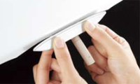 リモコンのスイッチひとつでノズルが伸出し、お掃除モード。デリケートなノズルを伸ばしたままお掃除できます。また、汚れが気になるときには簡単に取り外してお手入れ、新しく交換することもできます。
