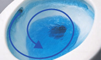 リムに設けた吐水口から噴出するトルネード水流が、便器内面をぐるりと洗浄します。